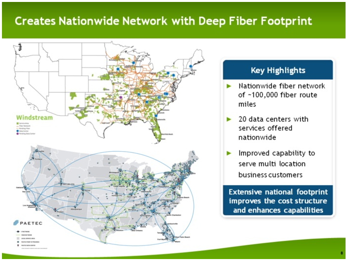 And in the press release, PAETEC ceo Arunas Chesonis said, “Both PAETEC and Windstream are built on a customer and employee-focused culture. Together, with far denser network assets, an expansive fiber infrastructure, and larger data center footprint, I believe our brightest days are ahead. Our combination now creates a new Fortune 500 company with the financial strength and scale to compete and win against any other provider in the industry.”