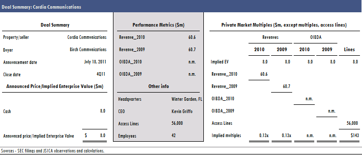 Thursday, July 28, 2011 at 9:55AM Birch to Acquire Cordia Communications for $8m