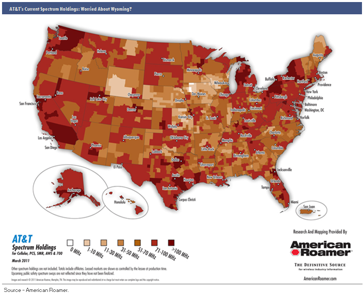 Despite the setback, AT&T vows to continue to invest in its networks and encourages the government to free up additional spectrum. With respect to investing in its network, AT&T will need to work quickly to meet the build-out requirements associated with the $6.6b worth of mostly B-block 700 MHz licenses it acquired during Auction 73 back in early 2008. B-block licenses must provide service covering 35% of its geographical area by February 2013.