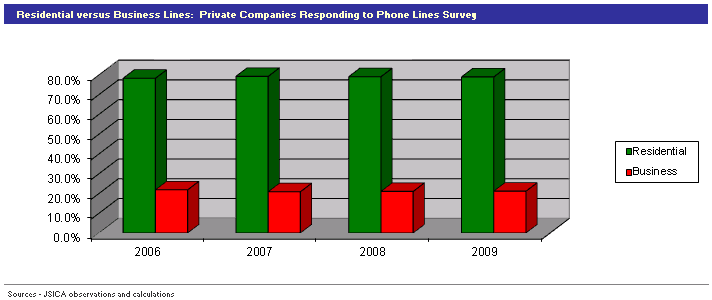 In 2003 our analysis indicated that nearly 80% of the access lines served by RLECs were for residences and just more than 20% were identified as business lines. Fast forward to 2009 and we find that 79% of lines were for residences and 21% served businesses.