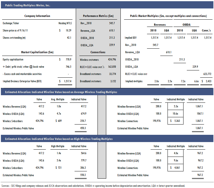 When JSI Capital Advisors first reported this deal in September, we estimated a value of $11-12m. Since financial information about the deal has not been made public, our rough estimate was based on access lines. Our Phone Lines 2011 lists 10,156 access lines and 1,710 broadband lines for Vision and 28,854 access lines and 11,542 broadband lines for EATEL in 2010. The deal appears to add a nice-sized chunk of access lines to EATEL’s holdings, but JSI Capital Advisors also noted that Vision experienced an unusually high annual line loss of 9% (The Deal Advisor: EATEL to Acquire Vision Communications).