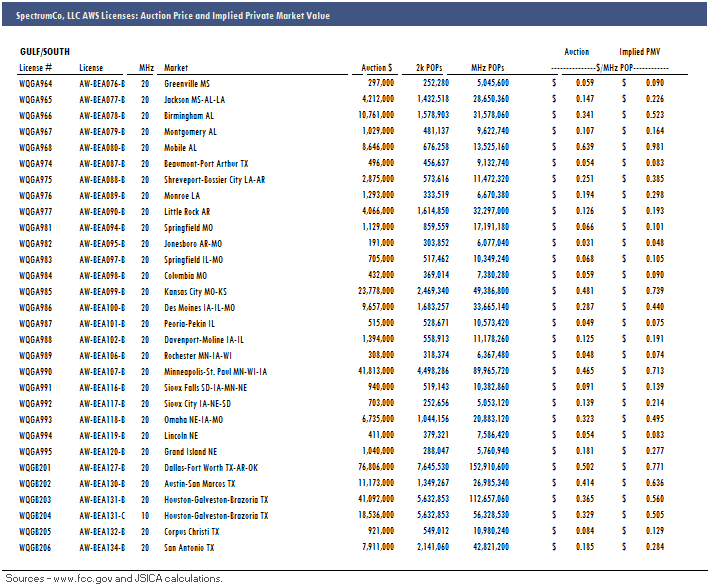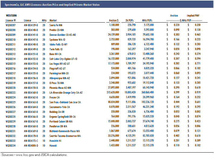In the second transaction, Leap will sell nearly 340m MHz POPs comprised of both PCS and AWS spectrum licenses, for $188m, or $0.55/MHz POP, to Verizon. The licenses cover a total of 20.6m POPs and are scattered across the country.